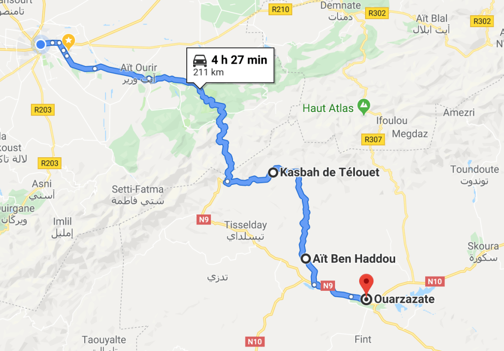 Sur la route de Ouarzazate, prendre le temps après le col du Tizin T’ichka de découvrir les kasbah de Telouët et d’Aït Ben Haddou. Compte tenu de la distance et des temps de trajet, il est préférable de faire ce circuit sur 2 jours. Nous sommes à votre disposition pour vous assister dans les choix de vos visites, n’hésitez pas à nous contacter.