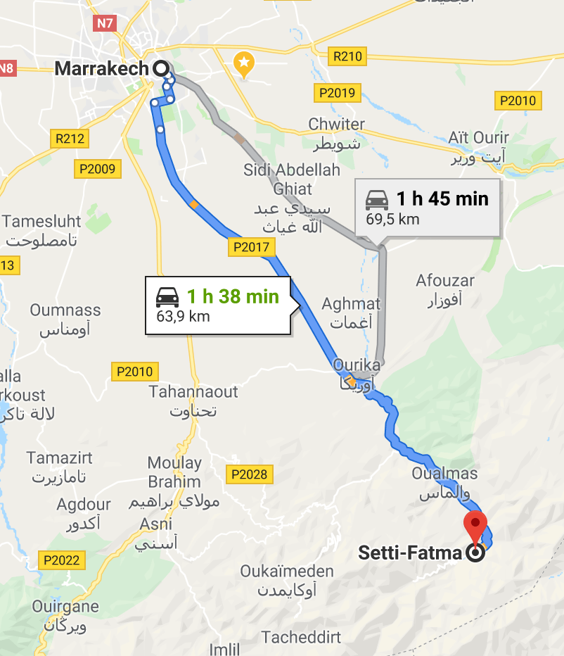 Sur une journée, vous pourrez découvrir la vallée de l’Ourika, faire une randonnée pour voir les différentes cascades. Déjeuner au bord de l’Ourika à Setti Fatma, et éventuellement visiter le parc Anima ou l’éco-musée berbère. Il est également possible d’envisager une promenade en dromadaire